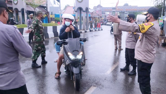 Petugas gabungan mengawasi setiap kendaraan yang yang melintas, dan memberhentikannya ketika pengendaranya tidak mengenakan masker. Kemudian yang melanggar diminta menunjukkan identitas diri serta diberikan sanksi fisik dan sosial.