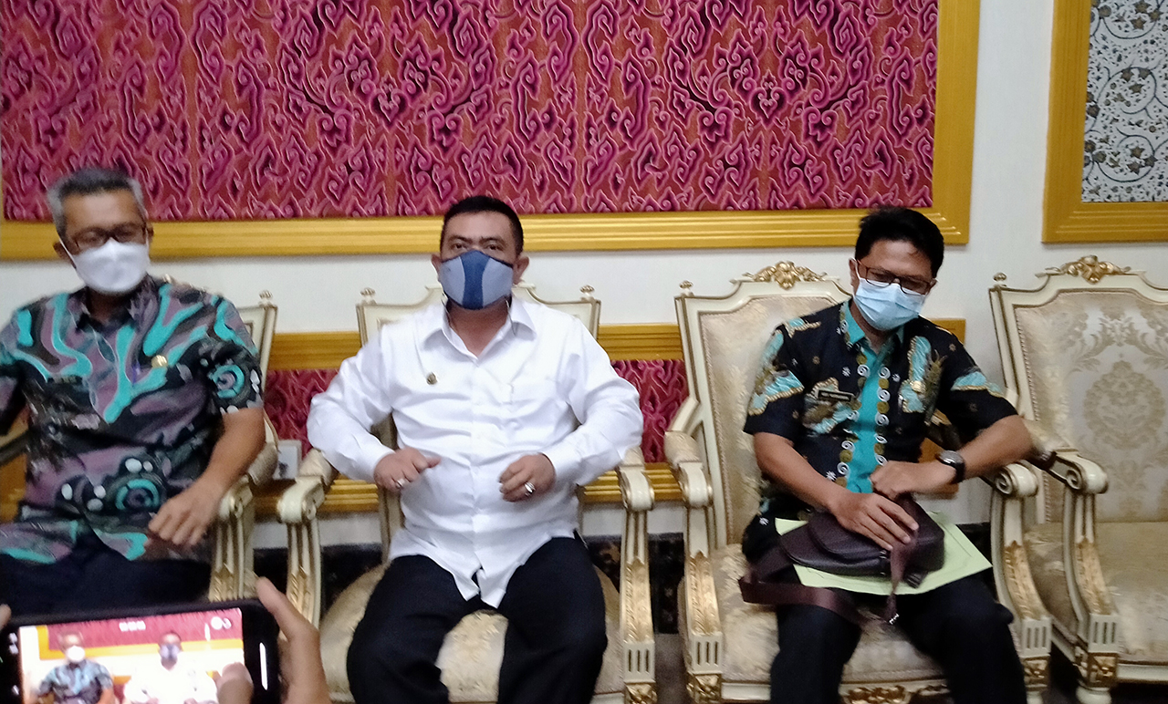 KOTA CIREBON, SC- Wali Kota Cirebon, Nashrudin Azis memberikan penjelasan terkait proses rencana hibah tanah di kawasan Bima untuk Yayasan Pendidikan Swadaya Gunung Jati (YPSGJ), di ruang Kanigaran Balaikota Cirebon, Kamis (21/1/2021).