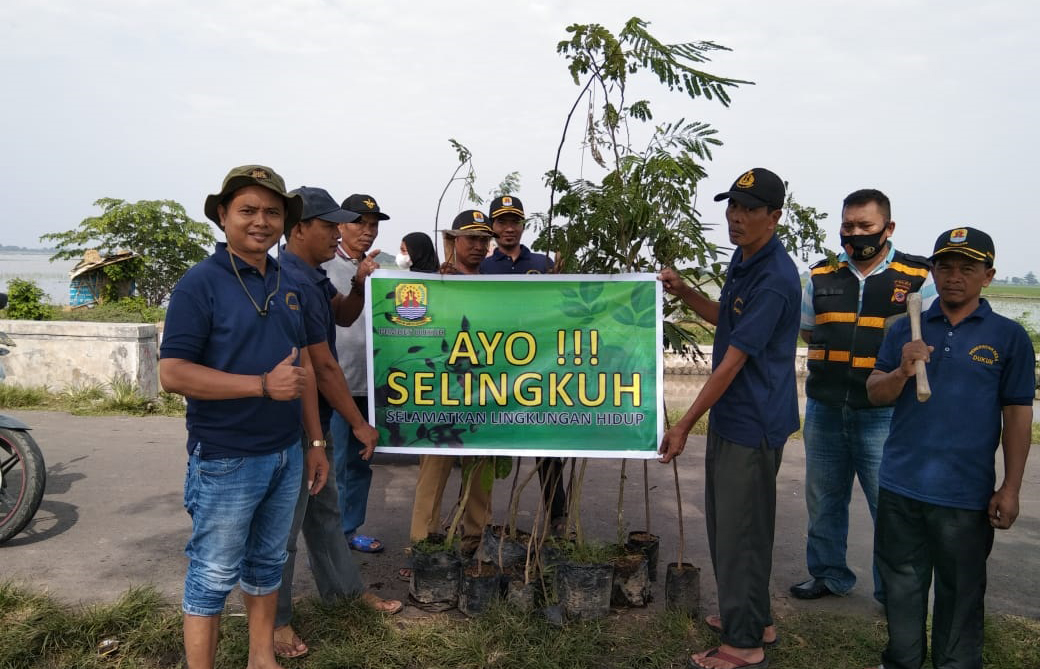 KABUPATEN CIREBON, SC- Dalam rangka penghijauan lahan di Desa Dukuh, Kecamatan Kapetakan, Kabupaten Cirebon pemerintah desa (Pemdes) setempat melakukan penanaman pohon sepanjang jalan di Blok Pintu Air. Kegiatan tersebut bertema ‘Ayo Selamatkan Lingkungan Hidup (Ayo Selingkuh)’.