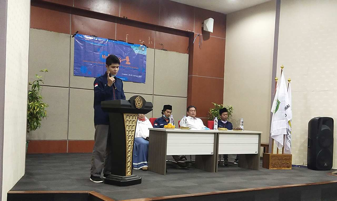 KOTA CIREBON, SC- Mahasiswa Jurusan Ilmu Al-Qur’an dan Tafsir (IAT/IQTAF) Fakultas Ushuluddin Adab dan Dakwah (FUAD) IAIN Syekh Nurjati Cirebon, yang tergabung dalam Himpunan Mahasiswa Jurusan Ilmu Al-Qur’an dan Tafsir (HMJ IAT/IQTAF) mengadakan musyawarah besar (Mubes) di Auditorium lantai 4 FUAD, Senin-Selasa (25-26/1/2021).