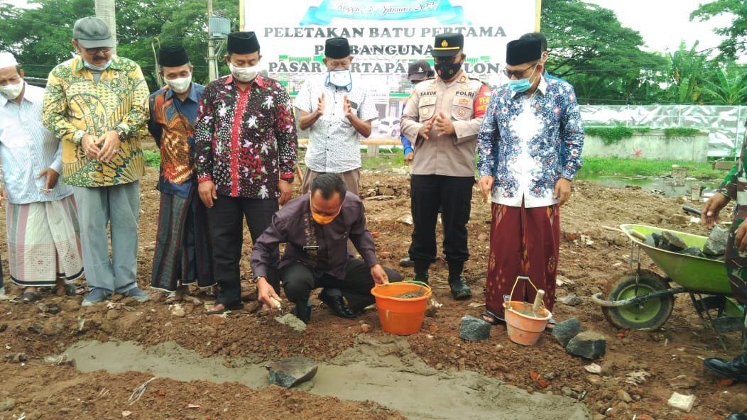 KABUPATEN CIREBON, SC- Camat Astanajapura, Iing Tadjudin melakukan peletakan batu pertama pembangunan Pasar Mertapada Kulon, Minggu (31/1/2021). Hadir dalam peletakan batu pertama yang berjalan khidmat tersebut, unsur Muspika, Pemdes Mertapada Kulon, lembaga desa, para ulama, dan perwakilan pedagang. Sebelum dilakukan pelatakan batu pertana diawali dengan pembacaan tahlil dan doa yang dipimpim tokoh ulama.