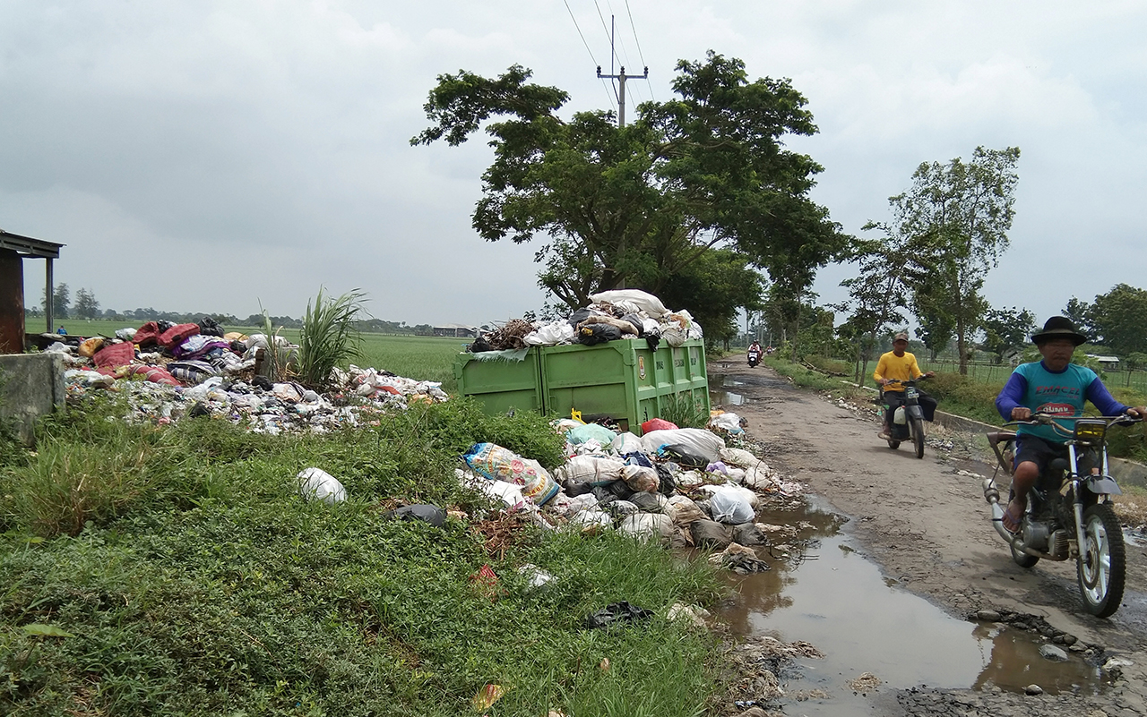 KABUPATEN CIREBON, SC- Sudah lebih dari enam bulan lamanya sampah di tempat sampah Desa Guwa Kidul, Kecamatan Kaliwedi, Kabupaten Cirebon dibiarkan menggunung. Bahkan, kondisi gunungan sampah tersebut telah memakan badan jalan yang menghubungkan Desa Guwa Kidul dengan Desa Wargabinangun dan sekitarnya. Padahal, di lokasi sudah tersedia truk dari Dinas Lingkungan Hidup (DLH) Kabupaten Cirebon yang setiap saat bisa mengangkut volume sampah dari tempat sampah tersebut.