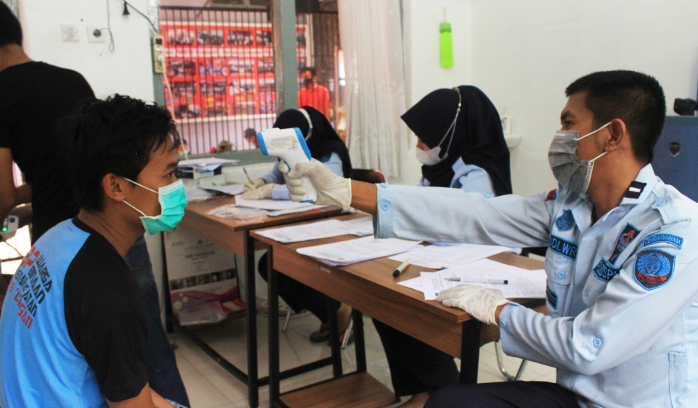 Sebelum WBP masuk ke Lapas Kuningan, dilakukan penyemprotan disinfektan terhadap barang dan orang, serta mencuci tangan. Selanjutnya mereka ditangani tenaga khusus dari bidang registrasi dan kesehatan, serta akan menempati ruang isolasi selama 14 hari kedepan, dengan tetap dilakukan pengecekan kesehatan.