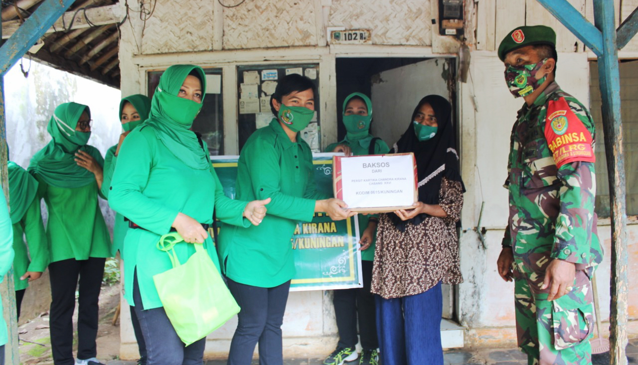 KUNINGAN, SC- Persit Kartika Chandra Kirana (KCK) Cabang XXIV Kodim 0615/Kuningan menggelar bakti sosial Peduli Kasih berupa pembagian sembako kepada warga kurang mampu dan anak yatim di wilayah Koramil 1508/Cidahu, Selasa (16/2/2021).