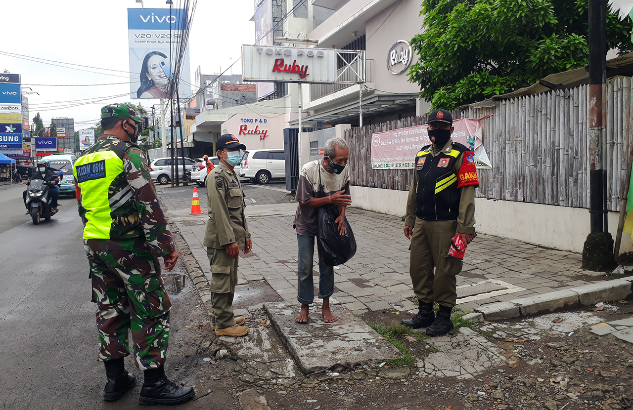 KOTA CIREBON, SC- Satuan Polisi Pamong Praja (Satpol PP) berkerja sama dengan Kodim 0614/Kota Cirebon rutin melakukan sosialisasi dan edukasi protokol kesehatan. Upaya tersebut dilakukan untuk menekan angka terpaparnya warga Kota Cirebon dari wabah Covid-19.