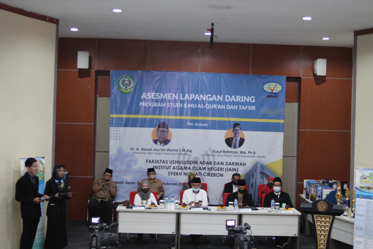 CIREBON, SC- Badan Akreditasi Nasional Perguruan Tinggi (BAN-PT) melakukan asesmen lapangan untuk akreditasi Jurusan Ilmu Al-Qur’an dan Tafsir (IAT) Fakultas Ushuluddin Adab dan Dakwah (FUAD) Institut Agama Islam Negeri (IAIN) Syekh Nurjati Cirebon, di auditorium lantai 4 gedung fakultas setempat, Senin (22/2/2021).