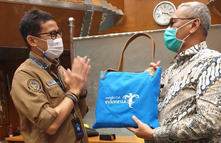 BERTEMPAT di Balairung Soesilo Soedarman, Gedung Sapta Pesona, Jakarta, Menteri Pariwisata dan Ekonomi Kreatif (Menparekraf), H. Sandiaga Salahudin Uno melakukan audiensi dengan sejumlah kepala daerah, salah satunya adalah Bupati Kuningan, H. Acep Purnama, belum lama ini.