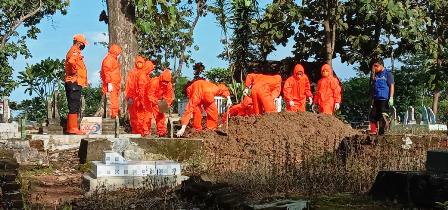 Hadir pada penguburan tersebut Kades Leuweunghapit Didi Suryadi, Camat Ligung Dedi Supriadi, Kepala Puskesmas Hj. Eli Yuliawati, Sekcam Endang Triana dan puluhah satgas Covid – 19 dari Kabupaten Majalengka yang berasal dari BPBD.