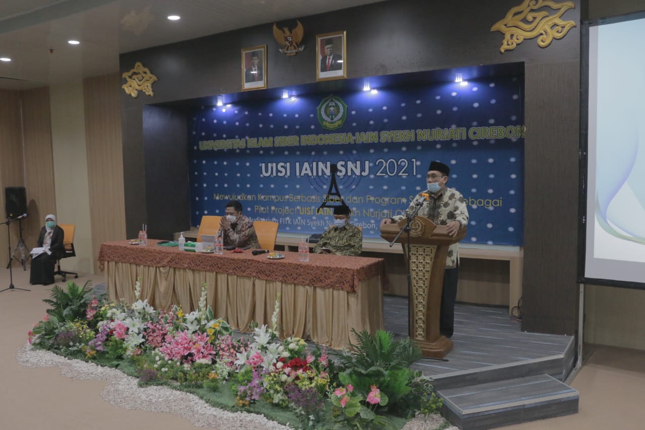 CIREBON, SC- Rektor Institut Agama Islam Negeri (IAIN) Syekh Nurjati Cirebon, Dr H Sumanta Hasim MAg mengungkapkan, Universitas Islam Siber Syekh Nurjati Indonesia (UISSI) yang diamanahi Kementerian Agama (Kemenag) RI kepada kampus setempat menjadi penguat transformasi kelembagaai IAIN Syekh Nurjati Cirebon menjadi Universitas Islam Negeri (UIN). Bahkan, kata dia, amanah Kemenag RI tersebut sejalan dengan proses transformasi tersebut.