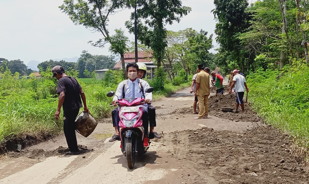 Pengurugan jalan yang berlubang ini hanya bersifat sementara meringankan para pengendara agar para pengendara ini tidak terjatuh akibat menghindari lubang.