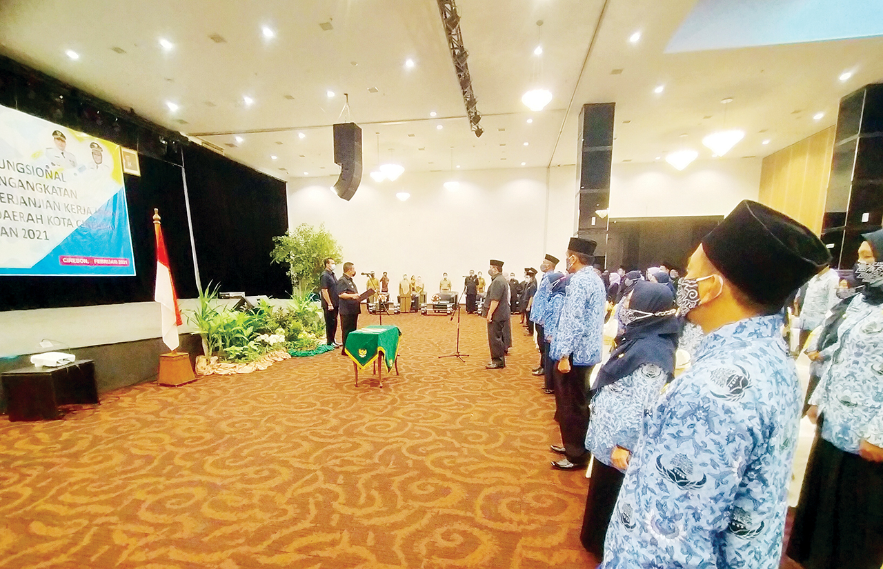 KOTA CIREBON, SC- Pemerintah Kota Cirebon mengangkat 44 pegawai pemerintah dengan perjanjian kerja (P3K). Pelantikan 44 P3K itu dilakukan Wali Kota Cirebon, H Nashrudin Azis, di salah satu hotel di Jalan Siliwangi, Senin (22/2/2021).