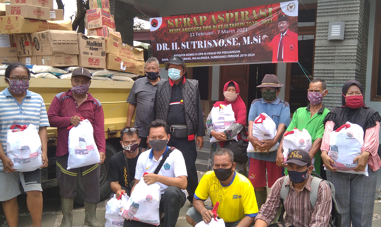 MAJALENGKA, SC- Untuk kesekian kalinya, Anggota DPR RI Fraksi PDI Perjuangan, H.Sutrisno memberikan bantuan kepada warga yang terkena dampak Banjir, di wilayah Kecamatan Ligung, Selasa (23/2). Sebelumnya bantuan diberikan pada korban banjir pada saat air merendam wilayah Ligung dan sekitarnya, pada Senin,8 Pebruari lalu.