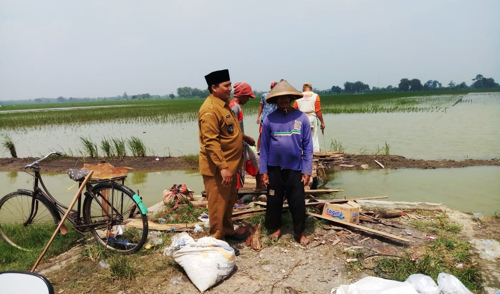KABUPATEN CIREBON, SC- Curah hujan tinggi yang mengguyur wilayah Kabupaten Cirebon dalam beberapa hari terakhir, membuat para petani kesulitan untuk pergi ke sawah. Hal itu salah satunya disebabkan putusnya jembatan akibat saluran pertanian dipenuhi air hujan.