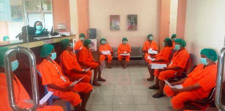 Skrining sendiri merupakan pemeriksaan kesehatan untuk mengetahui apakah seseorang beresiko lebih tinggi mengalami suatu masalah kesehatan. Setelah menjalani skrining, para pasien harus menggunakan pakaian pasien berwarna orange.