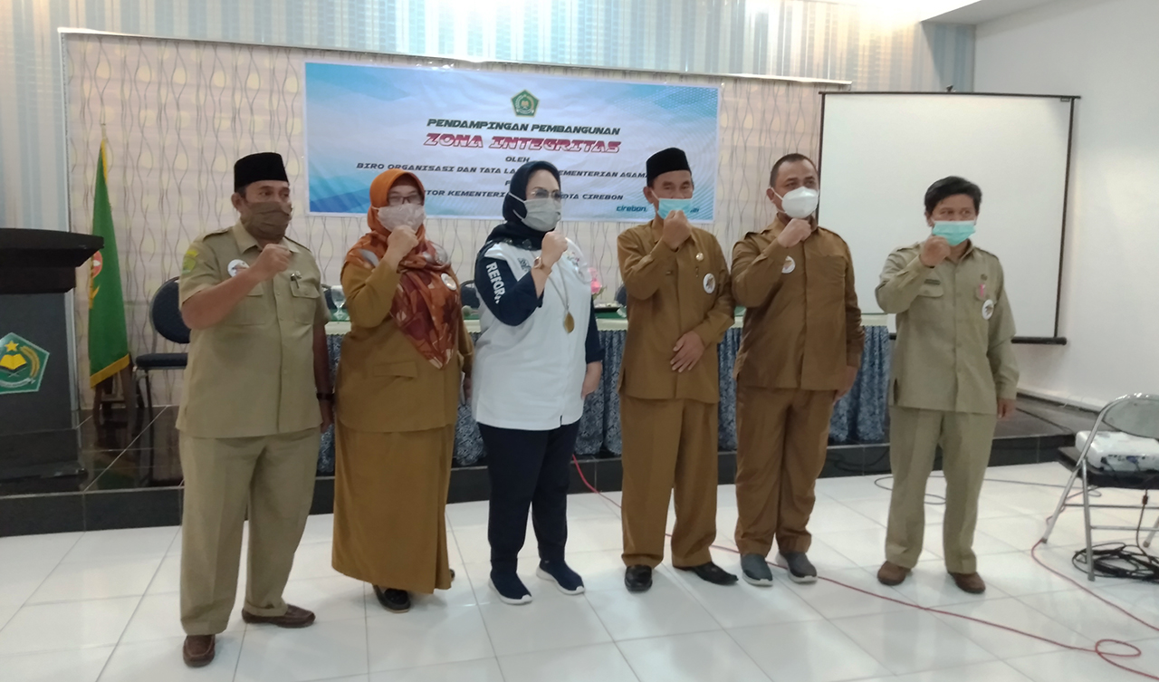 KOTA CIREBON, SC- Kementerian Agama (Kemenag) Kota Cirebon melakukan pendampingan pembangunan zona integritas (ZI) yang dipandu Biro Organisasi dan Tata Laksana Kementerian Agama RI di aula pertemuan Kemenag Kota Cirebon, Selasa (23/3/2021).