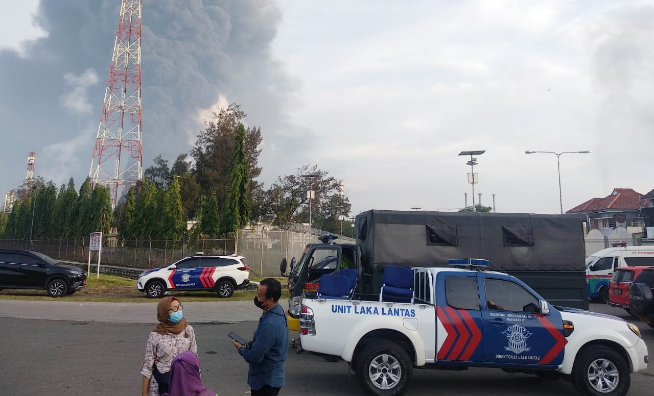 INDRAMAYU, SC- Pertamina terus berupaya melakukan pemadaman kebakaran di tangki kilang minyak Pertamina RU VI Balongan Indramayu yang meledak dan terbakar, pada Senin (29/3/2021) dini hari kemarin. Namun, berdasarkan pantauan Suara Cirebon, hingga Selasa (30/3/2021) siang, api belum padam. Dari lokasi api terlihat masih berkobar dan mengeluarkan asap hitam yang membubung tinggi. Kepulan asap bahkan terlihat dari jarak sekitar sepuluh kilometer.