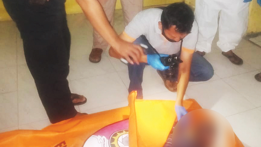 “Korban meninggal dengan posisi tergantung tali tambang plastik dengan ketinggian jarak kaki dan lantai sekitar 50 cm,” ujarnya.