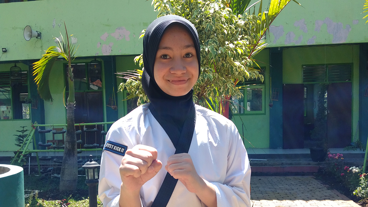 SEORANG siswi kelas 9 dari SMPN 4 Kota Cirebon, Vilvi Wanda Sandria (15) berhasil meraih juara 1 lomba taekwondo tingkat internasional yang diselenggarakan secara virtual di negara Venezuela, pada 29-31 Maret 2021 lalu.