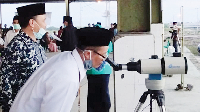 KABUPATEN CIREBON, SC – Upaya Badan Hisab Rukyat Daerah (BHRD) Kabupaten Cirebon melakukan pemantauan hilal di Pantai Baro, Kecamatan Gebang, untuk memastikan dimulainya awal puasa Ramadhan 1442 Hijriah, Senin (12/4/2021) sore jelang matahari terbenam, terhalang awan tebal. Akibatnya, hilal (bulan baru, red) itu pun gagal terlihat.