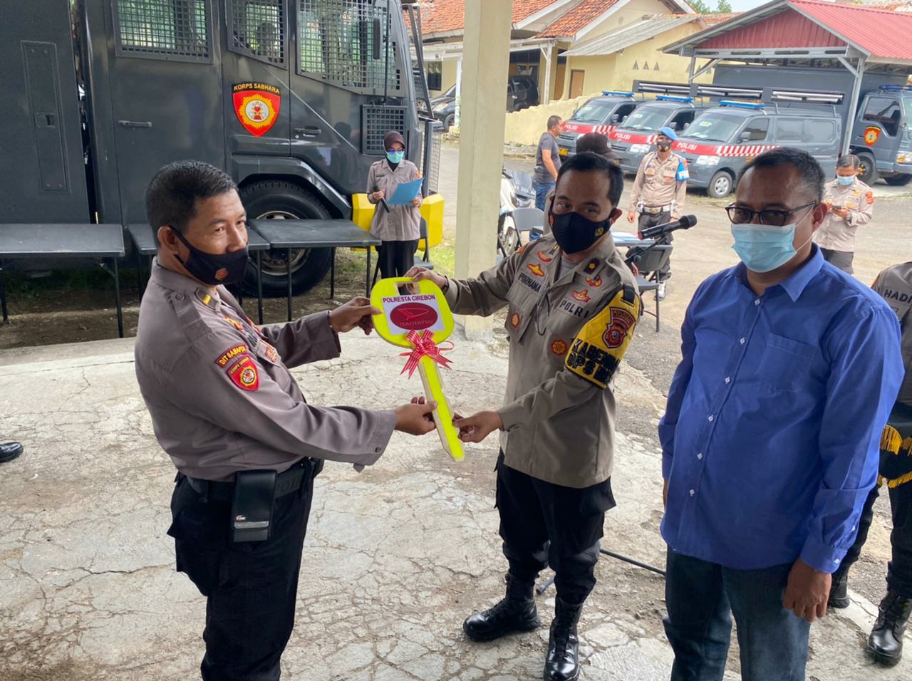 SUMBER, SC- Kapolresta Cirebon, Kombes Pol M Syahduddi, melalui Plt Wakapolresta Cirebon, Kompol Purnama, menyerahkan secara simbolis kendaraan dinas roda empat kepada perwakilan Polsek jajaran Polresta Cirebon di Asrama Polisi, Kalidawas, Selasa (13/4/2021).
