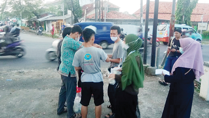 KOTA CIREBON, SC- Perhimpunan Mahasiswa Priangan Timur (PMPT) Wilayah Cirebon melakukan kegiatan berbagi dengan sesama di bulan suci Ramadhan tahun ini. Kegiatan berbagi tersebut dilakukan di sekitar MAN 2 Kota Cirebon dan lampu merah Jalan Pelandakan Kota Cirebon, Kamis (29/4/2021).