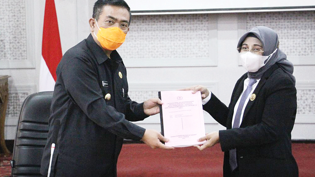 KOTA CIREBON, SC- DPRD Kota Cirebon menyerahkan rekomendasi atas Laporan Keterangan Pertanggungjawaban (LKPj) Wali Kota Cirebon akhir tahun anggaran 2020, pada rapat paripurna DPRD, di ruang rapat Adipura Kencana Balai Kota Cirebon, Jumat (30/4/2021).