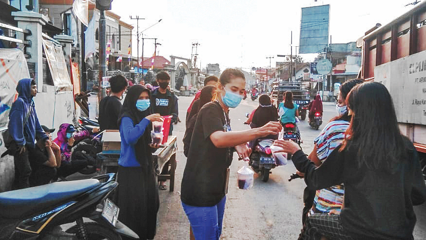 KABUPATEN CIREBON, SC- Komunitas Remaja Pabuaran Kecamatan Pabuaran, Kabupaten Cirebon, yang tergabung dalam Pabuaran Official menggelar bakti sosial dengan membagikan takjil gratis kepada masyarakat baik pengguna jalan maupun pejalan kaki, Sabtu (1/5/2021).