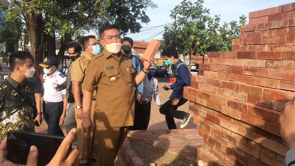 “Tadi ada batu bata yang terlepas, bagaimana menyelamatkannya. Memang pada batas ketinggian tertentu boleh dinaiki. Bagaimana cara agar ketika dinaiki tidak terkelupas lagi,” katanya.
