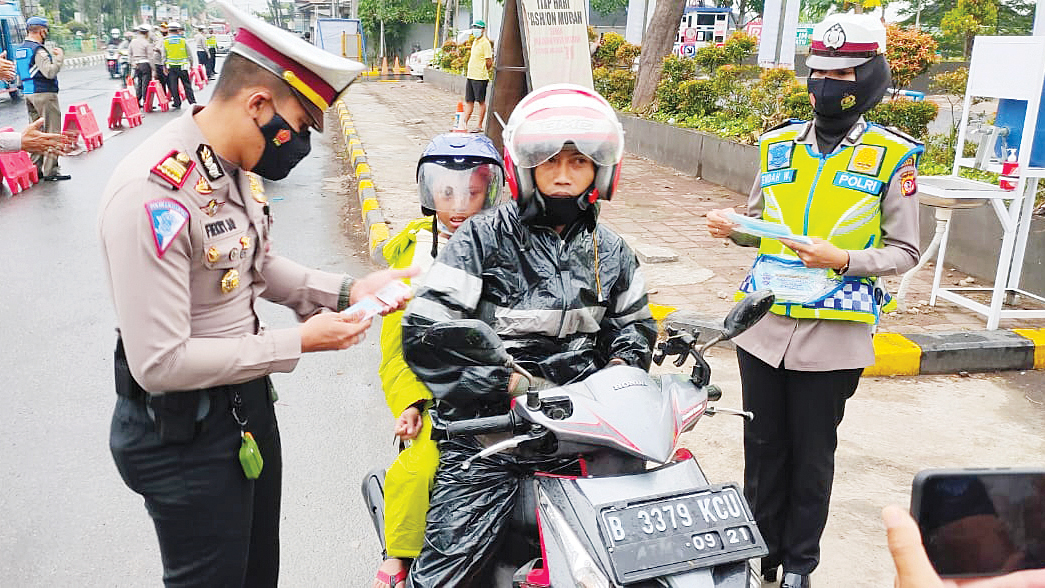 “Apabila ditemukan langsung kita putar balikan tepat di Bundaran Ramayana ini. Begitupun di tempat lainnya, (penyekatan, red) 24 jam termasuk yang di tol,” kata Troy usai memimpin pelaksanaan pengetatan kendaraan di Pos Weru, Senin (3/5/2021).