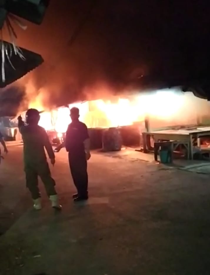 MAJALENGKA, SC- Pasar Cigasong, Kabupaten Majalengka dilalap si jago merah, Rabu (19/5/2021) petang, sekitar pukul 18.00 WIB. Akibatnya, sejumlah kios di pasar setempat pun ludes hangus terbakar.