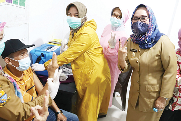 Pelaksanaan vaksinasi yang diikuti sebanyak 185 sasaran lansia dari lima RW yaitu RW 7, RW 8, RW 9, RW 10, dan RW 11 itu, ditinjau langsung Wakil Wali Kota Cirebon, Hj Eti Herawati.