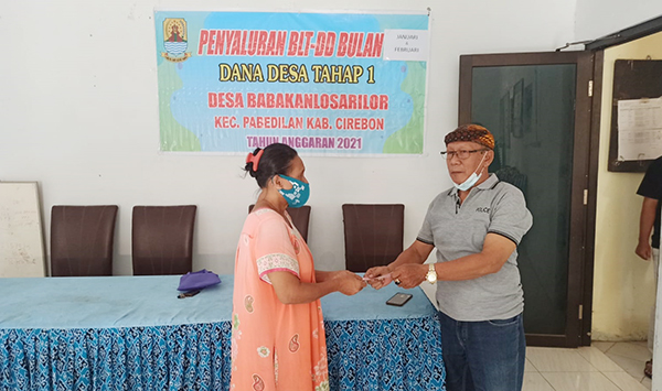 KABUPATEN CIREBON, SC- Pemerintah Desa (Pemdes) Babakan Losari Lor, Kecamatan Pabedilan, Kabupaten Cirebon menyalurkan bantuan bagi masyarakat terdampak Covid-19 dari sumber Bantuan Langsung Tunai (BLT) Dana Desa (DD), kepada 51 Keluarga Penerima Manfaat (KPM), Sabtu (22/5/2021).