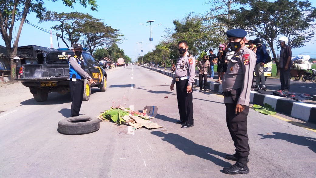 KABUPATEN CIREBON, SC- Pengendara roda dua menjadi korban tabrak lari di Jalan Raya Pantura Arjawinangun-Palimanan masuk Desa Winong, Kecamatan Gempol, Kabupaten Cirebon, Sabtu (5/6/2021).