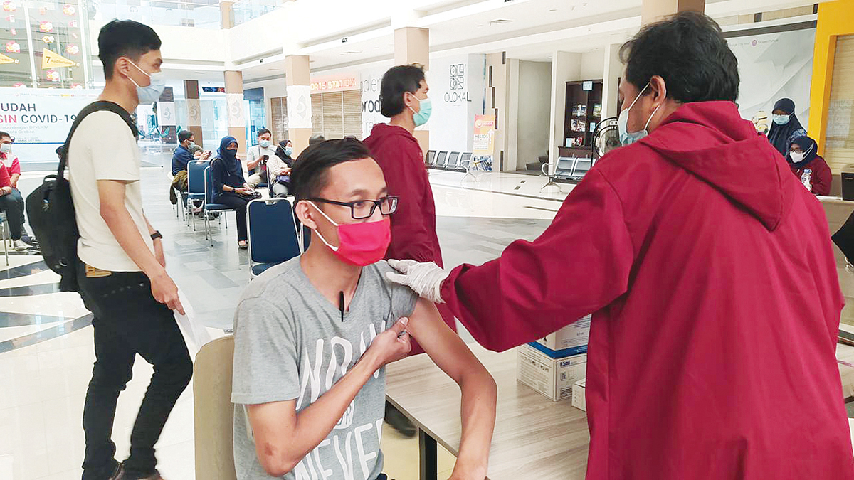 KOTA CIREBON, SC – Pemerintah Kota (Pemkot) Cirebon melalui Dinas Kesehatan (Dinkes) Kota Cirebon gencar melakukan vaksinasi Covid-19, salah satunya dengan menyasar pekerja publik. Petugas bahkan jemput bola melakukan vaksinasi di Grage City Mall (GCM), Kamis (17/6/2021).