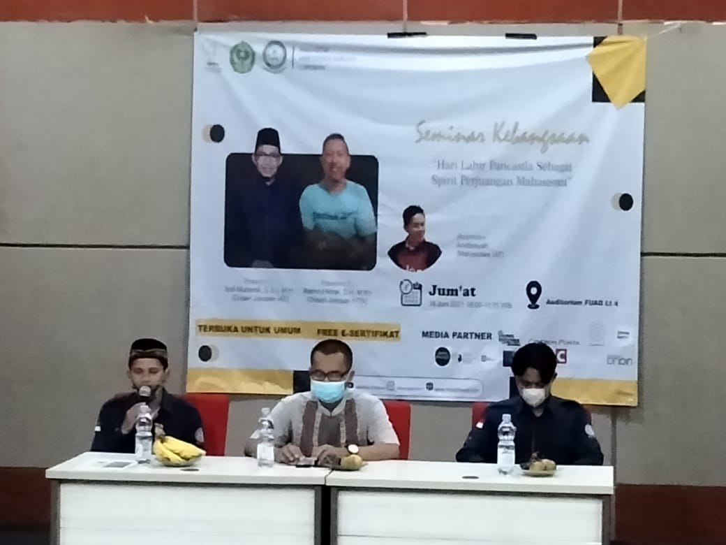 Dalam Seminar Kebangsaan bertema “Hari Lahir Pancasila Sebagai Spirit Perjuangan Mahasiswa” ini mengundang narasumber dan moderator yang sudah berpengalaman, mereka adalah Bakhrul Amal, S.H, M.Kn (Dosen Hukum Tata Negara) selaku narasumber dan Arviansyah (Mahasiswa Ilmu Al-Qur’an dan Tafsir semester 6) selaku moderator.