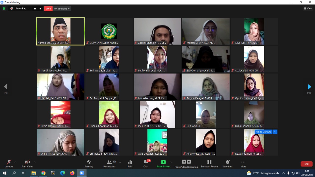 Kegiatan ini dilaksanakan secara virtual via zoom meeting dan via streeming youtube LP2M, karena jumlah calon peserta KKN-DR sebanyak 2.380 mahasiswa sedangkan kapasitas zoom hanya 500 peserta.