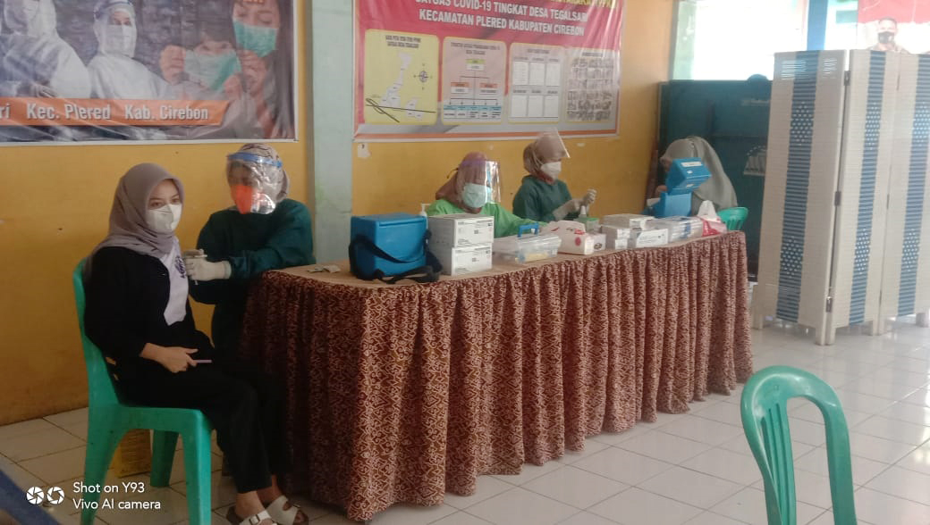 KABUPATEN CIREBON, SC- Pemerintah Desa (Pemdes) Tegalsari, Kecamatan Plered, Kabupaten Cirebon bersama Puskesmas Plered melaksanakan kegiatan vaksinasi tahap pertama bagi warga dan lansia, berlangsung di aula kantor desa setempat, Senin (28/06/2021).