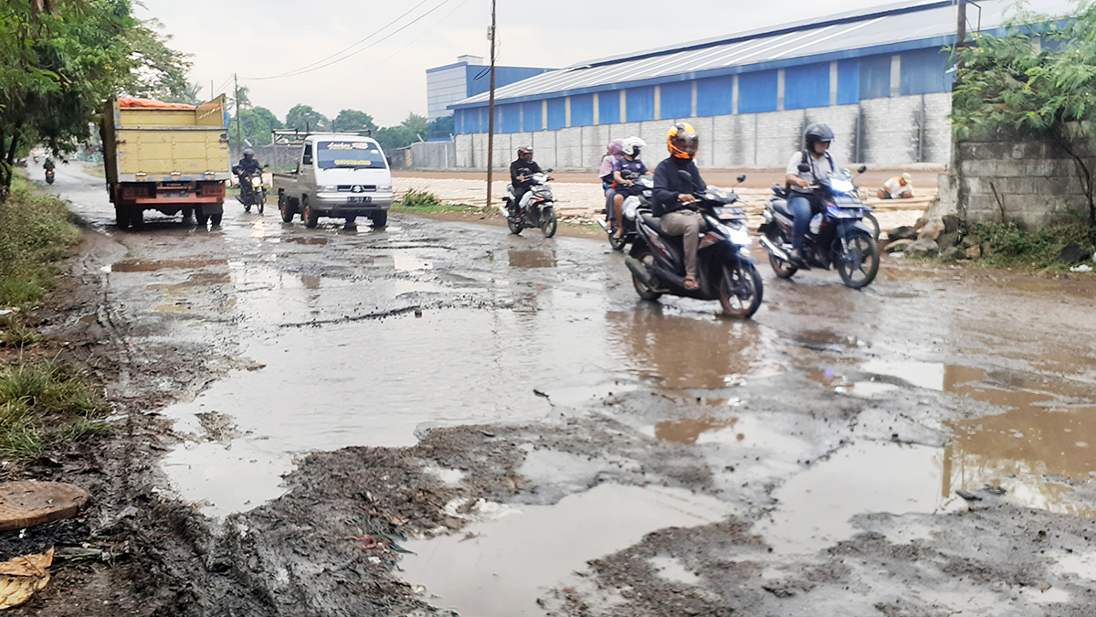 Ia yang mengendarai kendaraan roda dua, harus ekstra berhati-hati dan selalu waspada. Karena rusaknya jalan itu.