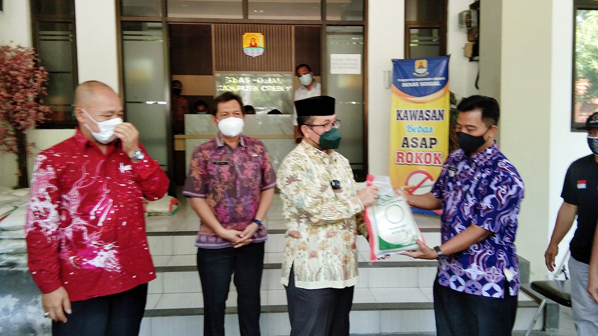 KABUPATEN CIREBON, SC- Pemerintah Kabupaten (Pemkab) Cirebon melalui Dinas Sosial (Dinsos) menyalurkan 3.000 paket bantuan beras untuk masyarakat yang membutuhkan. Penyaluran tersebut dilakukan secara simbolis oleh Bupati Cirebon, H Imron kepada perwakilan camat dan kuwu di Kantor Dinsos Kabupaten Cirebon, Jumat (30/7/2021).