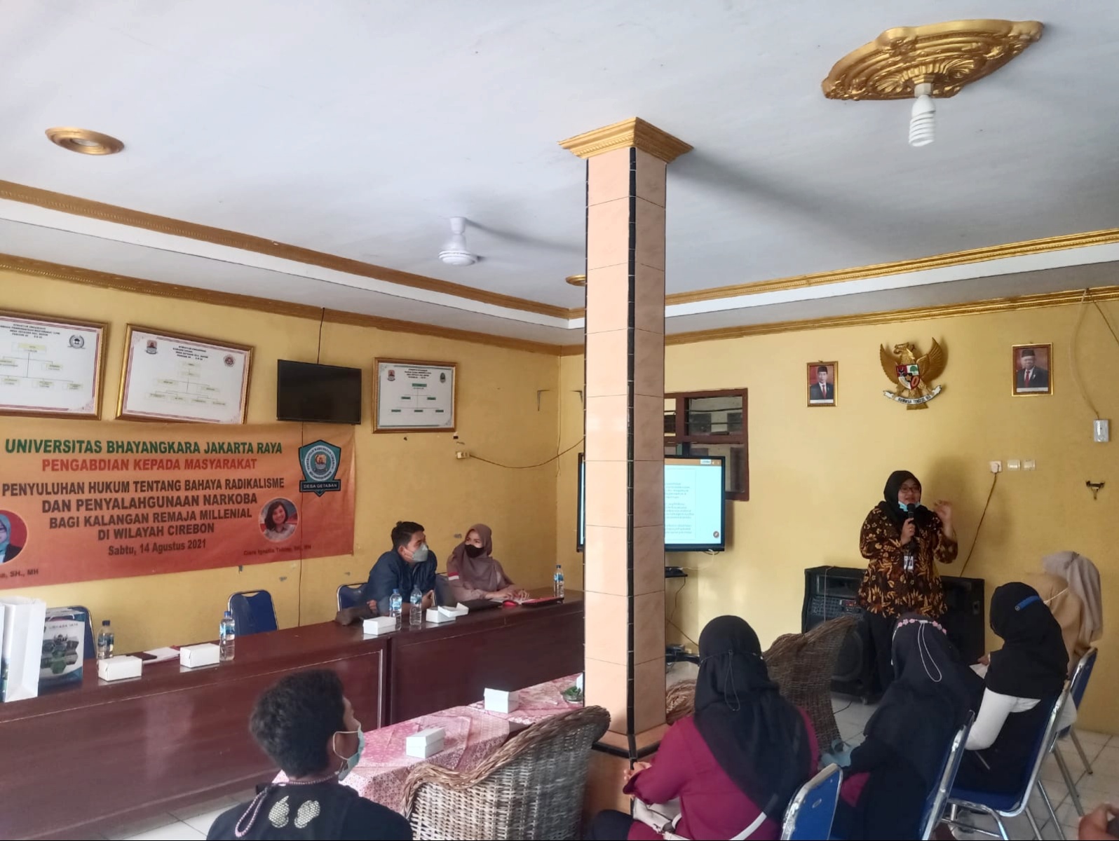 Kegiatan tersebut mengambil materi “Penyuluhan Hukum dan Bahaya Radikalisme dan Penyalahgunaaan Narkoba di Kabupaten Cirebon” dengan mengahadirkan Dosen Fakultas Hukum Universitas Bhayangkara Jakarata Raya, Diana Fitriana, SH., MH dan Clara Ignatia Tobing, SH. MH.