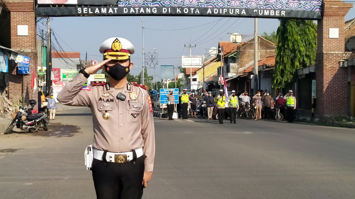 ADA pemandangan berbeda di Perempatan Pasar Sumber, Kabupaten Cirebon pada peringatan HUT ke 76 RI, Selasa (17/8/2021) kemarin. Jajaran Satlantas Polresta Cirebon mengibarkan bendera merah putih di jalan raya tepat menjelang detik-detik Proklamasi. Sejumlah petugas dengan sigap menghentikan semua aktivitas kendaraan untuk mengajak masyarakat dan pengendara memberi penghormatan kepada Sang Merah Putih.