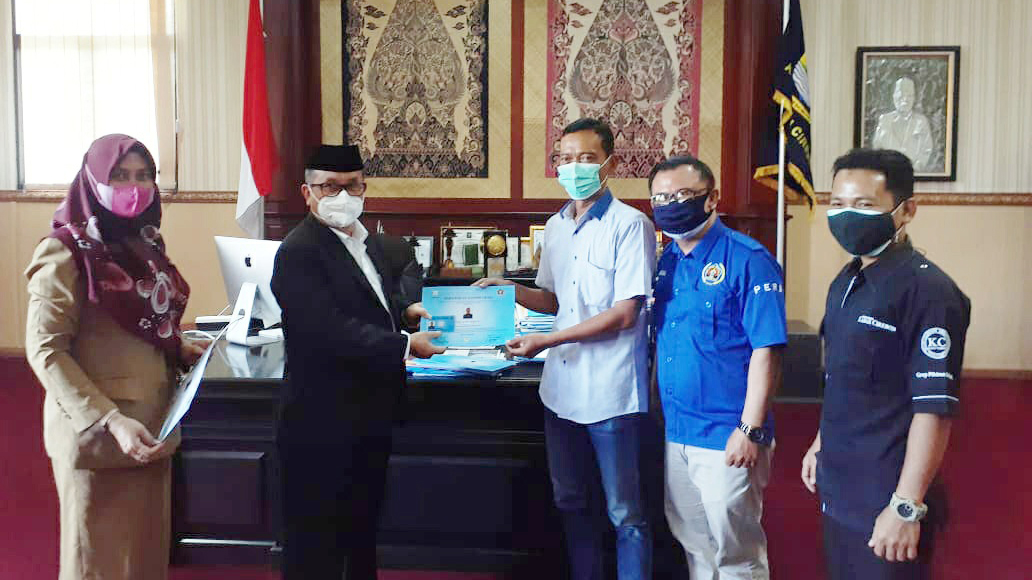 KABUPATEN CIREBON, SC- Wartawan memiliki peran penting untuk menyampaikan sebuah informasi baik melalui media cetak, daring maupun radio dan televisi. Karena itu, wartawan yang sudah memiliki kartu dan sertifikat Uji Kompetensi Wartawan (UKW) diharapkan bisa menjalankan tugas dan fungsinya dengan baik. Hal itu disampaikan Bupati Cirebon, H Imron MAg, usai menyerahkan kartu dan sertifikat UKW tahun 2020 angkatan XXXIX (39) dan XXXX (40) yang diselenggarakan PWI Jawa Barat, di ruang kerjanya, Senin (16/8/2021).