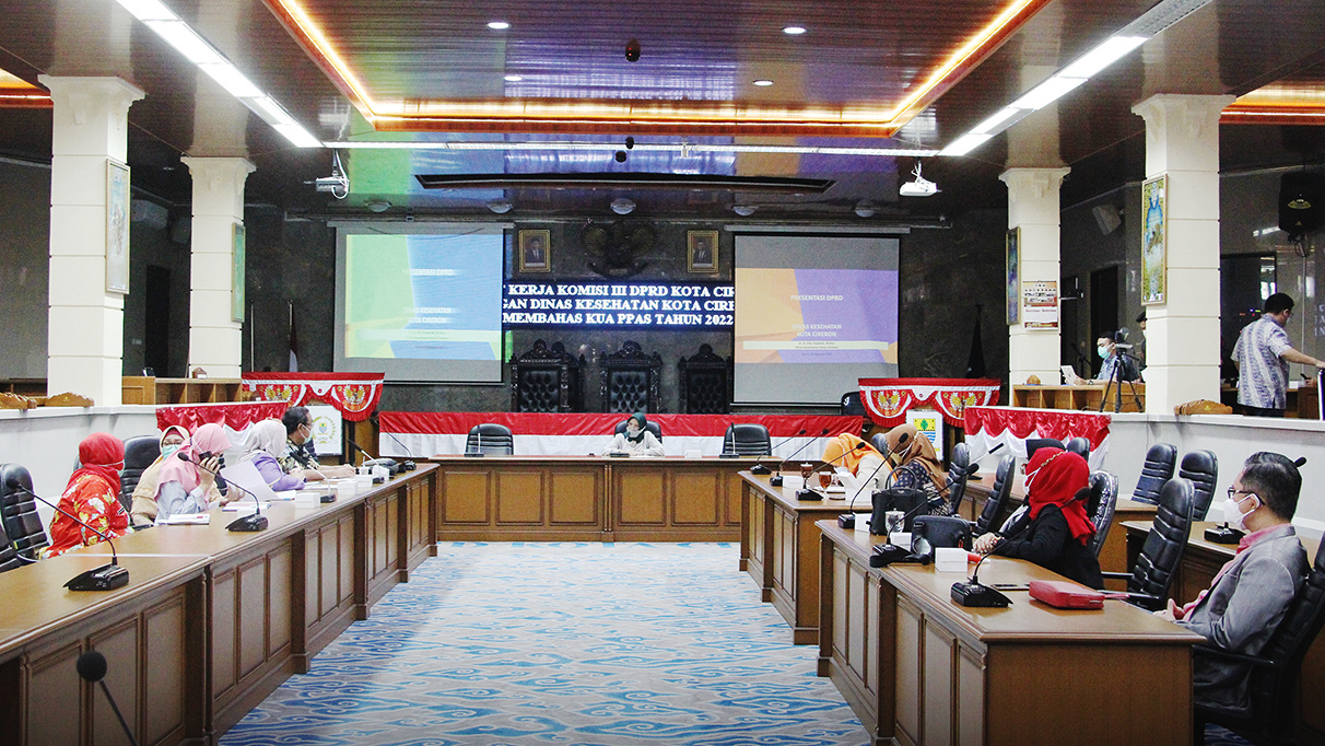 KOTA CIREBON, SC- Komisi III DPRD menggelar rapat bersama Dinas Kesehatan (Dinkes) Kota Cirebon membahas rencana kerja tahun 2022 di ruang Griya Sawala, Kamis (26/8/2021). Komisi III menyoroti anggaran penanggulangan Covid-19 dan pembayaran premi Badan Penyelenggara Jaminan Sosial (BPJS) Kesehatan.