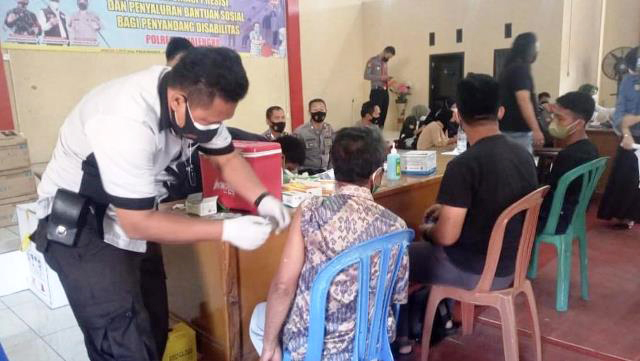 Kapolres menambahkan, oleh karenanya, petugas yang akan melakukan proses vaksinasi memberikan informasi hari dan jam pelaksanaan vaksinasi tersebut. “Proses antrenya itu ada selang waktu dua jam, nanti akan dialokasikan sebanyak 100 orang,” jelasnya.