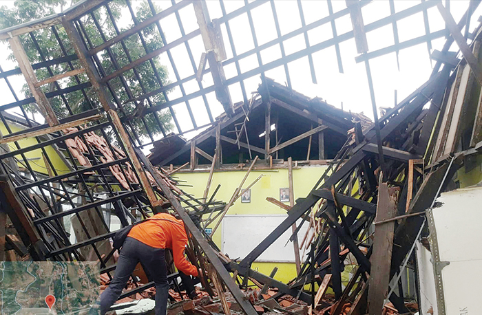 Diberitakan sebelumnya, cuaca hujan dengan intensitas cukup tinggi, dalam kurun waktu hampir seharian di sejumlah wilayah Kabupaten Cirebon menyebabkan sebuah bangunan ruang kelas di SDN 2 Cangkoak, Kecamatan Dukuhpuntang, Kabupaten Cirebon ambruk seketika, Selasa (14/9/2021). (Joni)