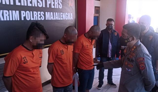 Ketiga pelaku yang telah diamankan tersebut diketahui berinisial ES (28), AS (26) dan P (28). Ketiganya merupakan warga Kecamatan Cikijing,Kabupaten Majalengka.Ketiga pelaku ditangkap tim buser Polres Majalengka di dua lokasi berbeda.