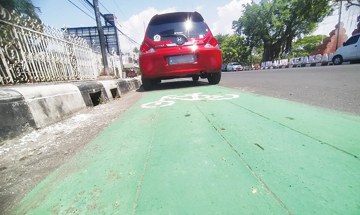 Namun, imbauan Dishub tersebut, tidak dindahkan masyarakat. Hal itu terlihat dari masih banyaknya kendaraan roda dua atau empat yang parkir di jalur sepeda tersebut.