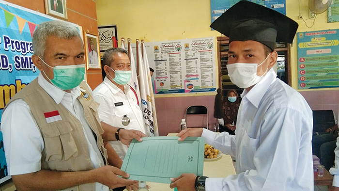 CIREBON, SC- Sebanyak 50 warga Desa Ambulu, Kecamatan Losari, Kabupaten Cirebon, dilepas secara resmi sebagai lulusan angkatan pertama program peningkatan pendidikan warga melalui pembelajaran kejar paket A,B dan C, di aula desa setempat, Rabu (23/9/2021).