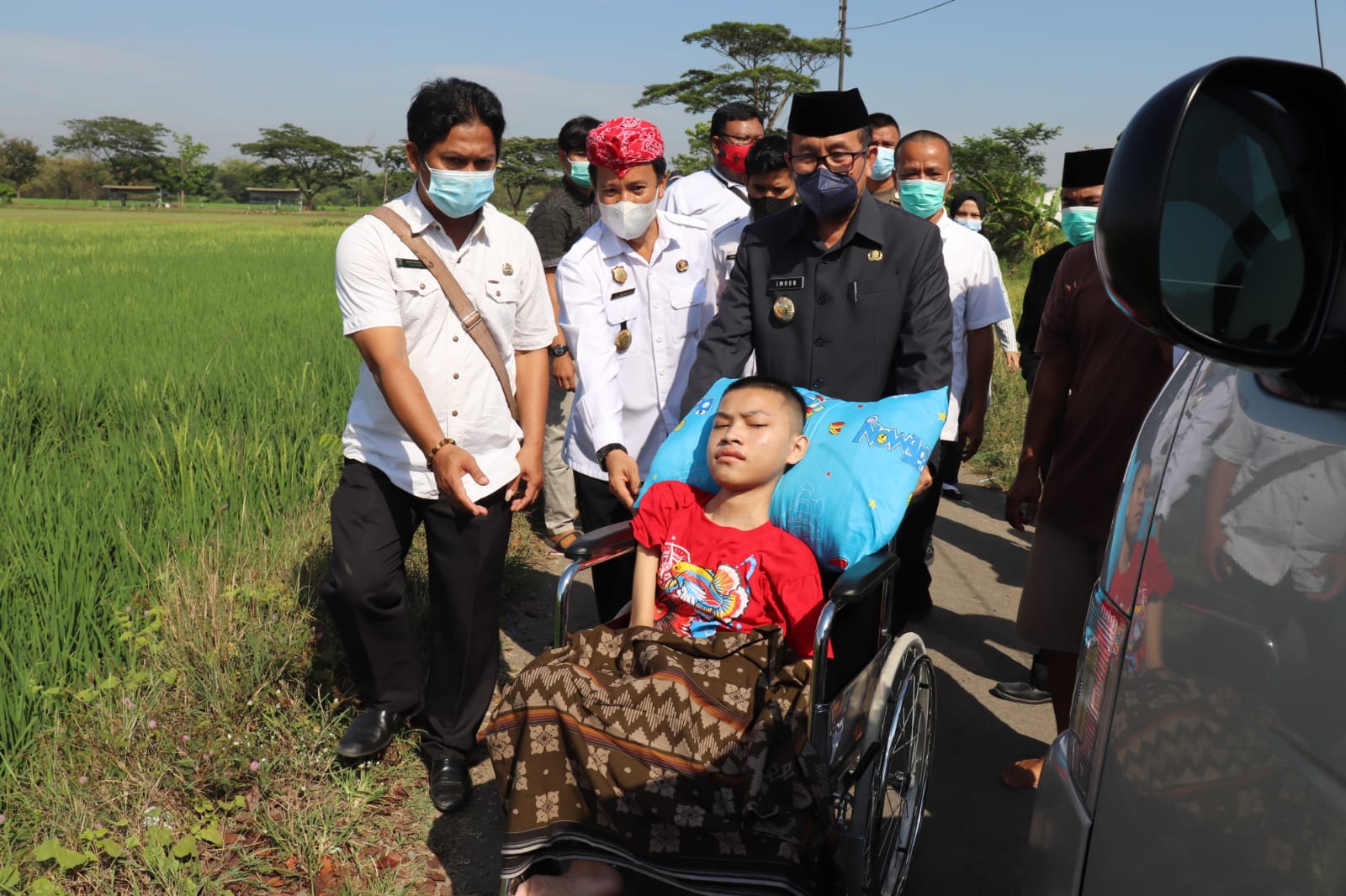 ANAK pengidap celebral palsy (lumpuh otak) asal Desa Winong, Kecamatan Gempol, Kabupaten Cirebon, Muhamad Fawaz (16) akhirnya dirujuk ke Rumah Sakit Hasan Sadikin (RSHS) Bandung untuk mendapat perawatan intensif. Keberangkatan Muhamad Fawaz ke RSHS dilepas Bupati Cirebon, H Imron MAg, Rabu (22/9/2021).