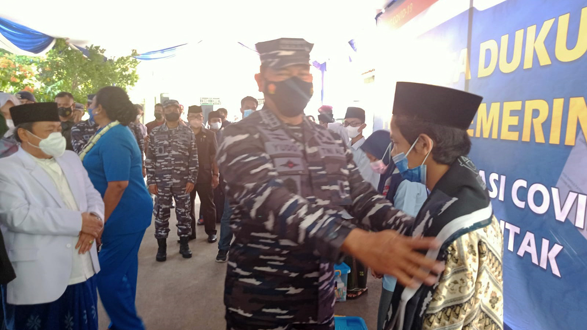 KABUPATEN CIREBON, SC- Kepala Staf Angkatan Laut (KASAL) Laksamana TNI Yudo Margono, meninjau vaksinasi massal di dua pesantren besar di Cirebon, yaitu Pondok Pesantren KHAS Kempek dan Pondok Pesantren Buntet, Selasa (28/9/2021).